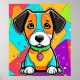 Un encantador cachorro personalizado con un estilo geométrico audaz y colorido. Este ilustracion de perros lúdico y vibrante es perfecto para los amantes de las mascotas y de un estilo moderno (Este diseño hecho con IA). ¡Haga el pedido hoy y acepte la alegría de ir de compras!