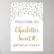 Personalizado texto dulce poster de fiesta de 16 años con confeti de plata y oro.