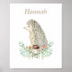 Erizo del bosque lindo con follaje forestal y hongos, póster personalizado. El estilo de fuente del texto, el color y el tamaño se pueden personalizar.