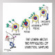 "Papá se entera de las dificultades del muestreo estadístico". Un niño dispara flechas de goma en los blancos. Papá tiene flechas en su cabeza y nariz al lado de un blanco etiquetado como Inexacto y Predeterminado, las flechas están por todo un objetivo etiquetado como Preciso, las flechas están en un grupo en uno etiquetado Preciso, y están agrupadas en el matorral en uno etiquetado como Preciso y Preciso.
