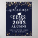 Bienvenido a los alumnos a su reunión de clase de la escuela secundaria o universitaria (editable para cualquier reunión de año) con este signo de poster de color personalizado con estrellas de oro, luces de cuerda, escritura a mano y tipografía decorativa y personalizado con el nombre de su escuela y año de curso de graduación en su elección de colores (mostrado con texto blanco y gráficos en un fondo azul marino editable). Los colores se pueden cambiar a los colores de la escuela o coordinar los colores de los temas fiestas. OPCIONES DE IMPRESIÓN poster: El ejemplo se muestra en un tamaño de 18x24": hay otros tamaños disponibles o el diseño se puede transferir a un tablero de papel, pancarta, fondo de tapiz o descargarse como archivo digital para la impresión local en la página de pedidos. ASISTENCIA: Para obtener ayuda con la modificación o personalización del diseño, el cambio de color, el redimensionamiento, la transferencia del diseño a otro producto o la conversión a un archivo de descarga, póngase en contacto con el diseñador ANTES DE PEDIDO a través de la pestaña de MENSAJE de charla de Zazzle que aparece a continuación o envíe un correo electrónico a makeitaboutyoustore@gmail.com.