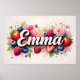 Celebra la dulzura y el encanto con este cartel personalizado con el nombre Emma en elegante letra 3D, rodeado de vibrantes frutas de acuarela y elementos florales suaves. Fresas jugosas, arándanos, frambuesas y delicadas flores se unen en una disposición botánica soñadora, perfecta para guarderías, habitaciones de niños o regalos de cumpleaños.