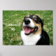 Una hermosa huella de perro con un alegre y sonriente tricolor Pembroke Welsh Corgi contra hierba verde. Personaliza esto con tu propio mensaje positivo y feliz en escritura blanca. ¡Que tengas un gran día y no te olvides de sonreír!