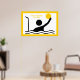 Poster del personalizado de silueta negra del jugador de waterpolo que presenta un minimalista ícono de pictograma de una silueta negra de un jugador de bola de agua sosteniendo su bola delante del gol y su texto sobre fondo blanco con borde amarillo. Este diseño fresco y moderno es una plantilla y es completamente personalizable.