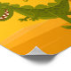 Este Poster Nursery presenta un ilustracion de la tierna caricatura Dinosaurio que corre en el bosque Jurásico prehistórico bajo el sol caliente. El Poster está diseñado en colores cálidos: amarillo, naranja y verde. Podría ser una gran adición a la decoración de las habitaciones de tu hijo.