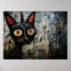 Resumen ilustrado personalizado emotivo gato negro surrealista sobre fondo de vapor grunge.