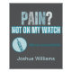 ¡Muestra tus habilidades de anestesia con este poster de la enfermera anestesista! Con la audaz frase "¿Dolor? No en My Watch!" y un icono de jeringa, este diseño es perfecto para CRNA, y profesionales de la anestesia. Ya sea que esté en la sala de operaciones, relajándose en casa o buscando el perfecto regalo de humor médico, este poster es elegante mientras hace una declaración sobre su experiencia en alivio del dolor!