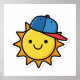 Un gráfico de alta calidad de un sol feliz, sonriente, con una gorra de béisbol, en un sencillo estilo personalizado. Este diseño es perfecto para una amplia gama de productos para los que disfrutan de arte brillante y caprichoso.