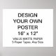 Personalizado imprimió una plantilla personalizada de 16" x 12", HORIZONTAL VALOR MATTE PAPER POSTER en blanco. Diseñar, crear, hacer el tuyo propio. Tu foto, imagen, texto, logotipo, gráficos en una impresión a color de borde a borde. ARCHIVAL PAPER es de 55 libras, 10,4 puntos de espesor, tiene un acabado mate con una superficie lisa y se recomienda para fotografía profesional y arte gráfico. Es resistente a la desvanecimiento con una clasificación de archivo de más de 95 años. Lo mejor para una decoración de alta calidad, de larga duración en casa y oficina, y para Navidades y regalos de cumpleaños.