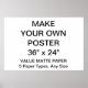 Personalizado imprimió una plantilla personalizada de 36" x 24", HORIZONTAL VALOR MATTE PAPER POSTER en blanco. Diseñar, crear, hacer el tuyo propio. Tu foto, imagen, texto, logotipo, gráficos en una impresión a color de borde a borde. ARCHIVAL PAPER es de 55 libras, 10,4 puntos de espesor, tiene un acabado mate con una superficie lisa y se recomienda para fotografía profesional y arte gráfico. Es resistente a la desvanecimiento con una clasificación de archivo de más de 95 años. Lo mejor para una decoración de alta calidad, de larga duración en casa y oficina, y para Navidades y regalos de cumpleaños.