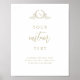 Añada un toque de elegancia a su decoración boda con este hermoso cartel de texto personalizado con atractivos elementos de caligrafía moderna en oro de marfil de champán y un delicado monograma botánico dibujado a mano que ofrece un encanto sereno, moda y atemporal. Ya sea una señal de bienvenida, tarjetas y regalos, en la memoria amorosa, o cualquier otra señal que necesite, este signo es totalmente personalizable para satisfacer sus necesidades. Elige tu propio texto, nombres o mensajes especiales para hacer tu gran día aún más personal. Agregue el texto utilizando los cuadros de texto de la plantilla. Puede editar el diseño y utilizar la herramienta de diseño para realizar cambios en su estilo de fuente, tamaño y posicionamiento. Monograma con iniciales en caligrafía. 10" x 8" es sólo nuestro tamaño predeterminado, el signo está disponible en muchos tamaños. Fácil de enmarcar o pegar/grapar en MDF baratos. Parte de nuestra colección "Boda de Monograma Crema de Champagne" con muchos artículos de coordinación disponibles.