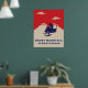 Agregue el nombre de su pista de esquí favorita o cualquier texto personalizado para crear su propio poster personalizado al estilo de un poster de viajes vintage. Tiene un divertido toque retro con su combinación de rojo, azul marino y crema y cuenta con un ilustracion de moto de nieve y jinete en un telón de fondo de montañas nevadas.