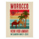 Stylish Group Family MOROCCO Vacation Glossy Poster with CUSTOMIZABLE TEXT, featuring colorful vintage sunset design with camels and trees. In the top left hand corner, there is the Moroccan flag in the shape of a heart. The text is bold grunge sans serif typography, with family name and year. The Latin phrase says VENI VIDI AMAVI, which means I CAME, I SAW, I LOVED. ALL TEXT IS CUSTOMIZABLE so you can make this totally PERSONALIZED for your family or group. Matching gifts and Marrakech version available.