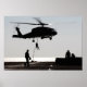 Personnel fast-rope out of an SH-60F Seahawk helicopter featured with aircraft.