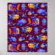 Póster Pesca tropical divertida en morado oscuro