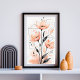 Este elegante estampado floral presenta delicadas flores de melocotón entrelazadas con elegantes hojas negras y suaves texturas acuáticas. Los toques geométricos le dan un toque moderno, convirtiéndolo en una pieza perfecta para una decoración contemporánea, minimalista o de inspiración escandinava. Ideal para salones, dormitorios o espacios de oficinas que buscan un toque tranquilo y elegante.