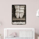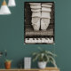 Una hermosa fotografía de la vida en tonos sepia de zapatos de ballet en punta sobre un teclado vertical de piano rodeado por un borde gráfico de estilo polaroide. El poster de gran tamaño es de 30 x 42 pulgadas o 76 1/4 x 106 1/2 cm
