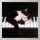 Se muestra a un poster con una foto impresa de un lindo gatito en las teclas del piano. Personalizar este artículo o compra tal cual. Imagen de stock
