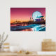 Póster Pie Santa Mónica de Los Ángeles con puesta de sol