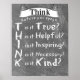 ¡Piensa antes de hablar! Ideal para profesores y aulas para recordar a los niños que piensen. T- ¿Es cierto? H - ¿Es útil? ¿Es inspirador? N - ¿es necesario? K - ¿Es amable?