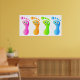 Una fila de cuatro coloridas huellas humanas con caras felices.