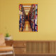 Este poster te lleva a pasear por un largo pasillo de libros en las pilas de una gran biblioteca. La luminosidad de la habitación deja entrever las hileras de libros en un caleidoscopio de colores: rojo, verde, azul, negro, blanco, dorado, marrón, morado. El ángulo simétrico crea un diseño abstracto geométrico que parece llevar al infinito. Las reflexiones sobre el suelo recién encerado contribuyen al patrón general.