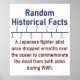 La historia es fascinante. Revelen su fascinación con este hecho de temática histórica: una vez un piloto de combate japonés arrojó heridas sobre el océano para conmemorar a los muertos de ambos lados durante la Segunda Guerra Mundial. Ideal para los aficionados a la trivia y a la historia.