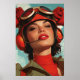 El poster presenta una representación de inspiración vintage de una piloto retro de temática soviética, adornada con atuendos clásicos de vuelo y exuberante aire de confianza y coraje. Con un telón de fondo que recuerda la época dorada de la aviación, ella se erige como símbolo de los logros y aspiraciones innovadores que caracterizaron la era.