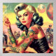 Póster Pin-up de motociclista tatuado