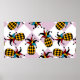Póster Piña estilizada. Gorra y rhombus Harlequin. Mar
