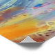Vibrantes remolinos de color verde, amarillo y morado se mezclan con fuertes golpes de naranja y rosa, creando un sentido dinámico de movimiento. La composición abstracta evoca una sensación de armonía caótica, captando la atención con sus colores vivos y formas audaces.