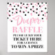Cartel de rifa de pañal para la ducha de bebé con un patrón de confeti negro y rosa.