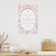 Póster Pink Bow Floral Chinoiserie Baptism Welcome Sign