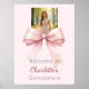Add a stunning touch to her Quinceañera décor with this personalized pink bow poster. Featuring a soft pastel background, elegant script fonts, and space for her photo, it’s a perfect piece to frame or hang at the venue.