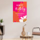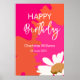 Póster Pink caliente y Naranja Floral Feliz cumpleaños Fi
