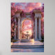 Transform your space into a sanctuary of romance and serenity. This stunning poster showcases a majestic marble arch draped in blooming pink cherry blossoms, opening onto a glowing sunset where an elegant fountain flows in perfect harmony.