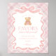 Póster Pink Coquette Bow Bear Plaid Party Favors Sign
