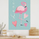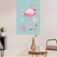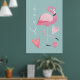 Love Flamingos is a delightful pattern with a pink flamingo on a turquoise background featuring cute pink hearts. An adorable design featuring a whimsical flamingo with hues of soft aqua..