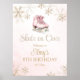 Póster Pink Ice Skating Birthday Gold Snowflakes Welcome