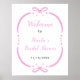 Pretty bridal shower welcome sign with a pink ribbon frame. Perfect for a spring or summer bridal shower. The words can be changed to suit your own details or requirements.