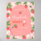 Customize it with your child’s name and party date to create a charming entrance for your berry first birthday, strawberry shortcake party, or summer garden themed celebration. The cheerful strawberry border and warm pink background make it a beautiful statement piece for your entryway, dessert table, or photo backdrop.