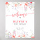 Póster Pink watercolor floral baby shower welcome sign