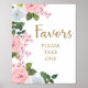 Beautiful and elegant pink and white springtime floral / roses and green leaves botanical watercolor baby shower "Favors, please take one" poster. Perfect for your springtime or summer baby girl outdoor shower.