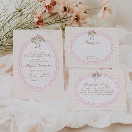 Celebrate your spring/summer baby shower with our lovely pink and yellow lemon-themed baby shower design.