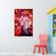 Poster de pintura artística borgoña y color de agua floral rojo.