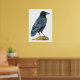 Esta es una pintura acuarela de cuervo. Creo que los cuervos tienen plumas hermosas - negro pero refleja color púrpura y azul bajo la luz del sol. Este cuervo está encaramado en un tronco de árbol que tiene musgo creciendo en la parte superior.