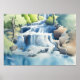 Póster Pintado De Las Acuarelas De Una Cascada