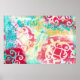 Póster Pintado de medios mixtos turquesa y escarlata con