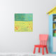 Un moderno cuadro paisajístico contemporáneo con una tranquila florida pradera de verano con pájaros volando contra el cielo y un bosque de pinos a lo lejos. Los colores amarillo y verde son frescos y edificantes. Arte original de Nic Squirrell.