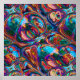 Una elegante manta de tiro con pintura al óleo de colores inspirada en el arte abstracto en rojo, turquesa, violeta, rosa, verde, amarillo, azul y naranja.